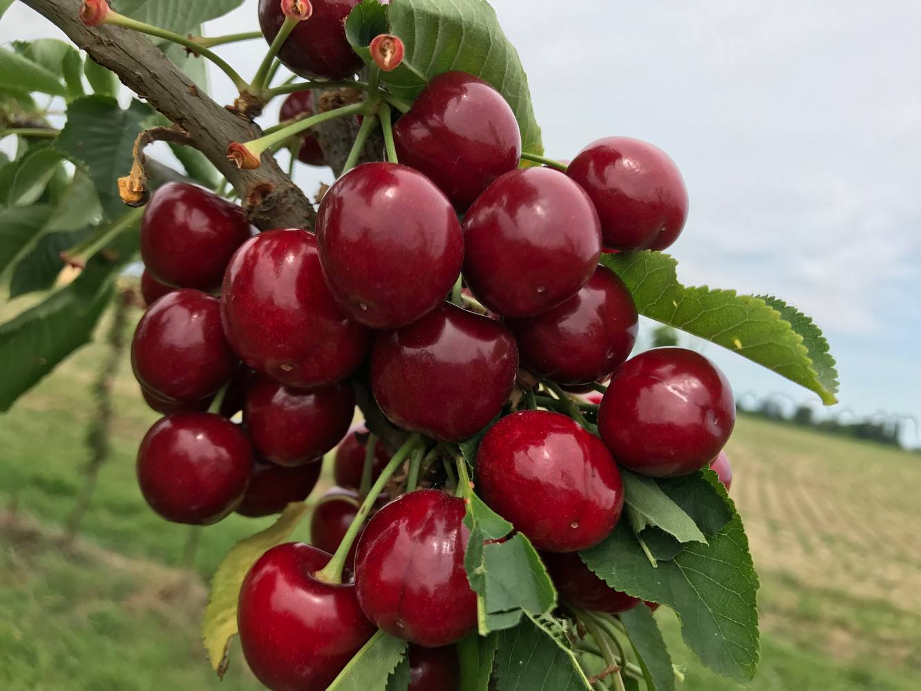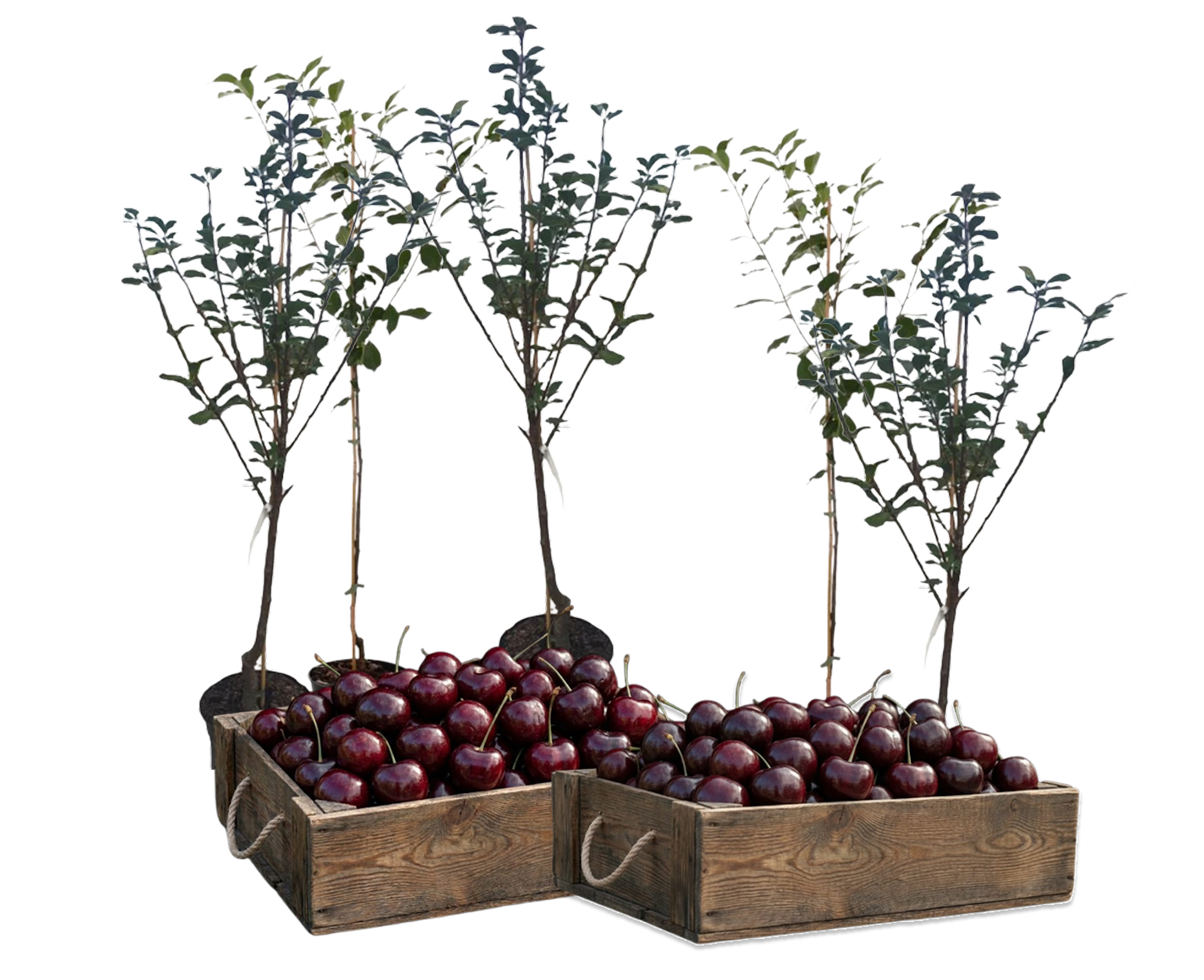 Саженцы черешни сорта Канадский Гигант — высокоурожайный сорт, который начинает активно плодоносить уже в первый сезоны. Масса одного плода достигает 20–30 г, а урожайность может составлять до 50 кг с одного дерева.
