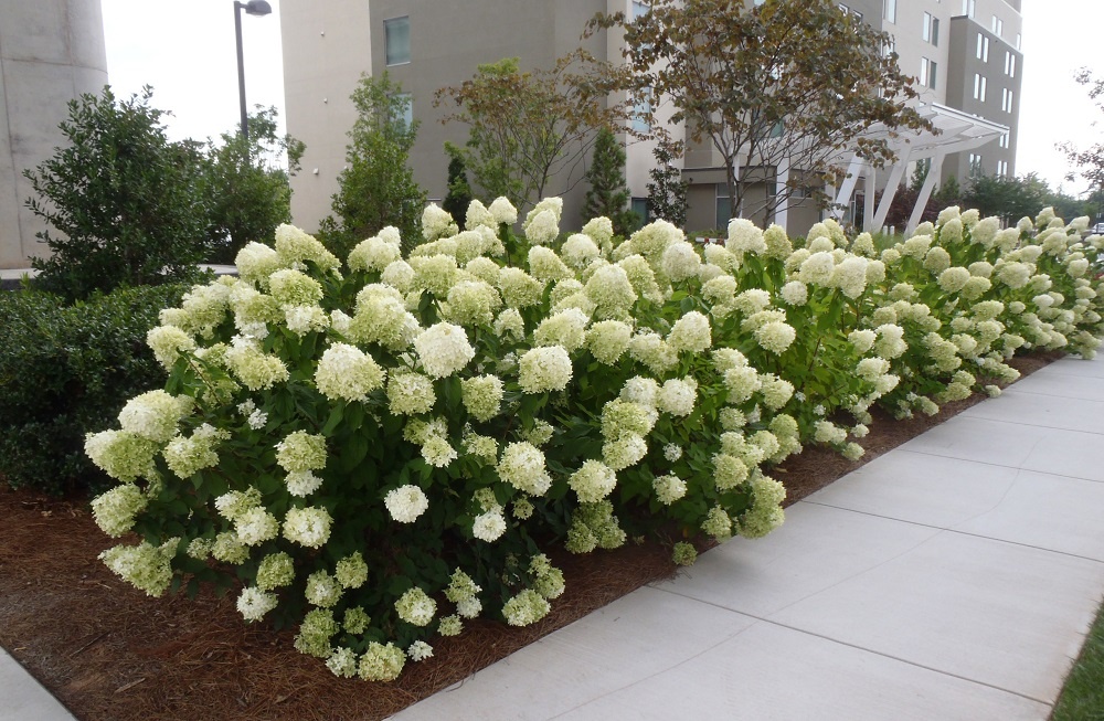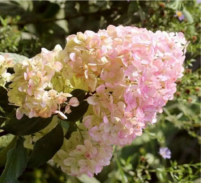 Одна из самых красивых метельчатых гортензий "Свит Саммэ" в переводе означает Сладкое Лето. Куст высотой до 150 см и шириной до 120 см, компактный, крона густая, цветет очень обильно. Соцветия крупные, плотные 30-35 см в длину. Цветки в основном стерильные, при роспуске зеленоватые, затем бело-кремовые, осенью соцветия окрашены одновременно в светло-розовый, розово-зеленоватый и белый цвет. Цветение начинается в июле и продолжается до осени. Это отличное растение для балкона или террасы, для массовых посадок или для кустарников. Морозостойкость высокая: до -30 ºC.