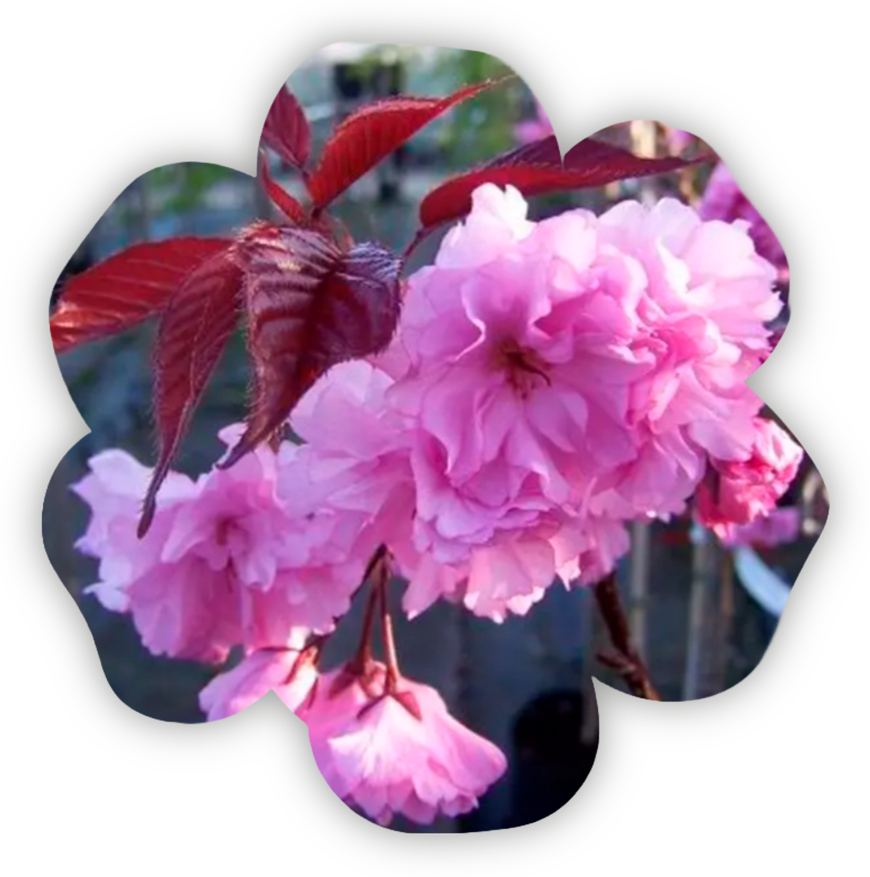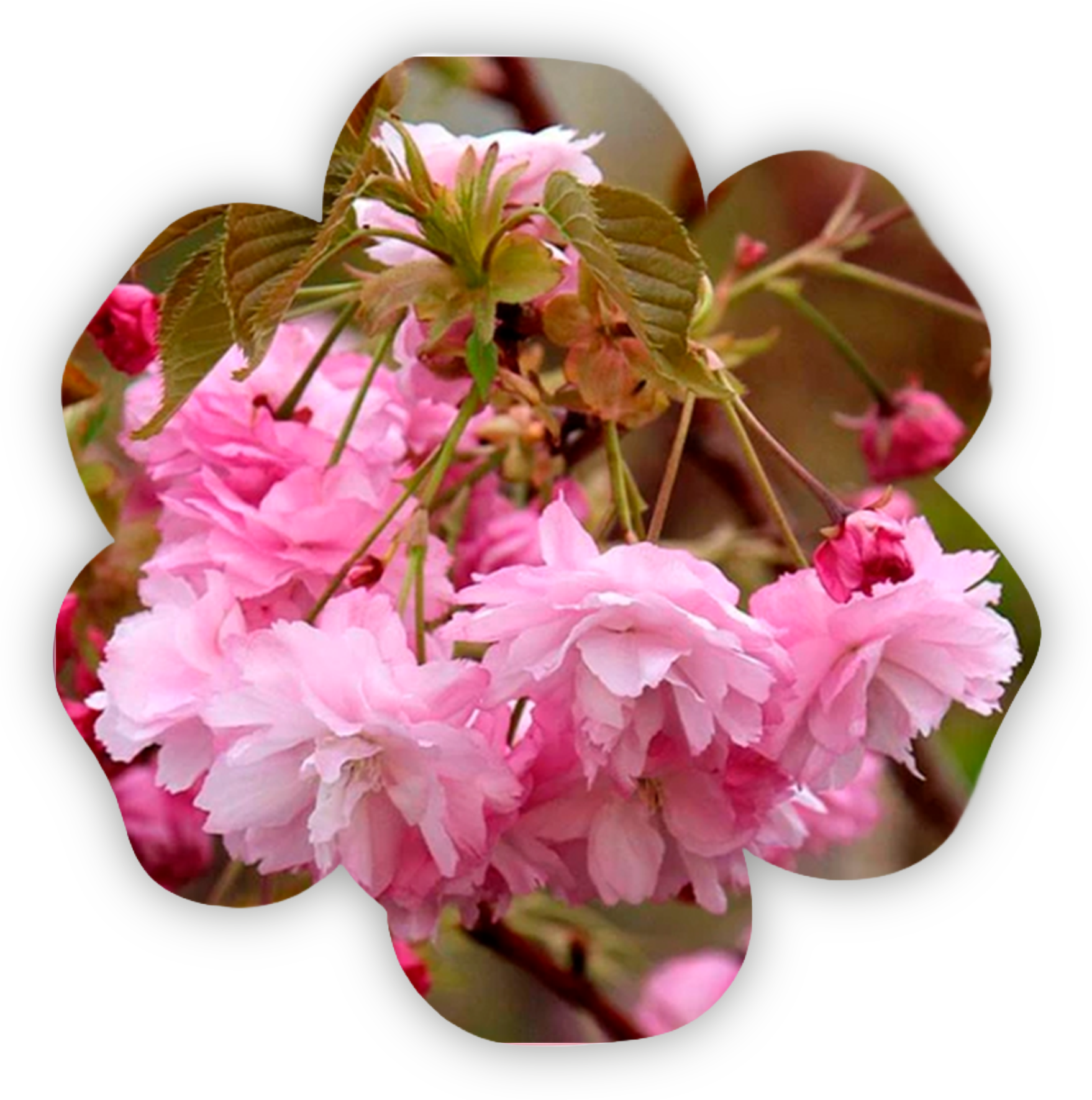 Мелкопильчатая вишня "Фугензо" (Fugenzo) – необыкновенный сорт сакуры, который отличается своей широкой, чашевидной формой кроны и, во взрослом состоянии, достигает 15-ти метров в высоту.
